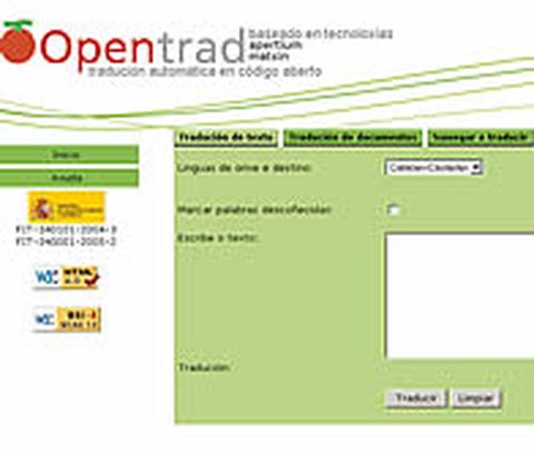 Tradutor de documentos e textos en cdigo aberto. OpenTrad es un sistema de cdigo abierto que proporciona traduccin automtica. Vasco gallego espaol y catalnPuede hacer traducciones entre ms de 20 pares de idiomas y tambin han incluido el asturianoEn cuanto al euskera solo se puede traducir del espaol.